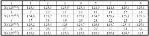 Tabela 2. Lista observacija (statistički list) za parametar X (125±0,5)